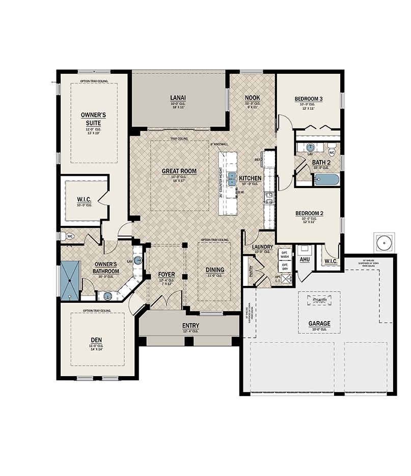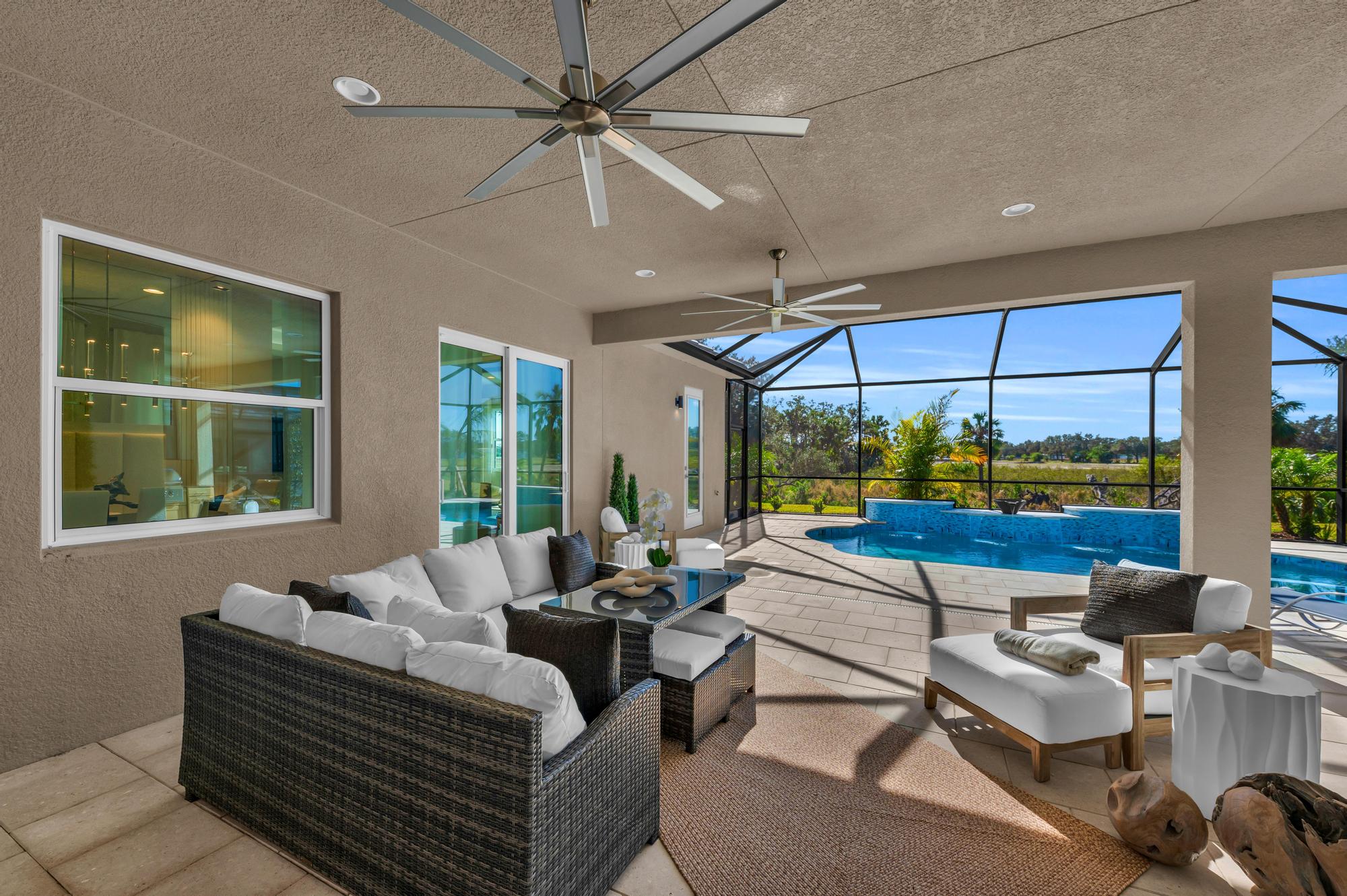 From the spacious, open-concept living area to the signature lanai to the spa-like owner’s suite and beyond, the Aruba 2 is all about paradise. Past a grand entryway and foyer, you’re welcomed by an open-concept living area that’s waiting for the clink of wine glasses, the scents of weeknight meals, and the laughter of spur-of-the-moment dinner parties and get-togethers. Step into your owner’s bedroom and bathroom, which have been specifically designed to make you feel as pampered as possible. Past the stunning bathroom with a walk-in shower and dual vanities, the open, airy bedroom leads right to the lanai. Best of all, the luxury and comfort doesn’t stop there in the Aruba 2 — a second and third bedroom with a bathroom ensure that your family, friends, and guests always feel as welcomed and cozy as can be. The office/den will allow you the flexibility to work from home. The Aruba 2 is waiting with open arms to welcome you into a whole new world of luxury.