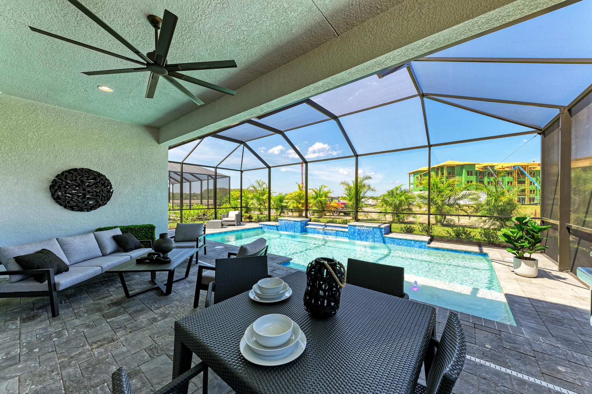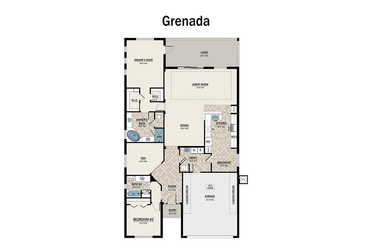 This 2 bedroom, two bathroom, 1,996 square foot living space is filled with warm light, sophisticated design, and endless happy vibes on one masterful floor. You will find a majestic entryway, a great room that seamlessly melds with a generous breakfast nook and beautiful kitchen, an office or a den for whatever you wish and of course, a spectacular owner’s suite with two walk-in closets, and a spa-like bathroom with dual vanities, a walk-in shower and a luxurious soaking tub. For added convenience, it includes a drop zone adjacent to the garage and laundry room. But luxury isn’t confined to the inside of your home. Outside, an extensive lanai awaits for all of your entertaining and relaxing needs. Whether you choose to add a beautiful pool or not, your peaceful and private lanai is where you’ll sit back, relax and soak up the sunshine.