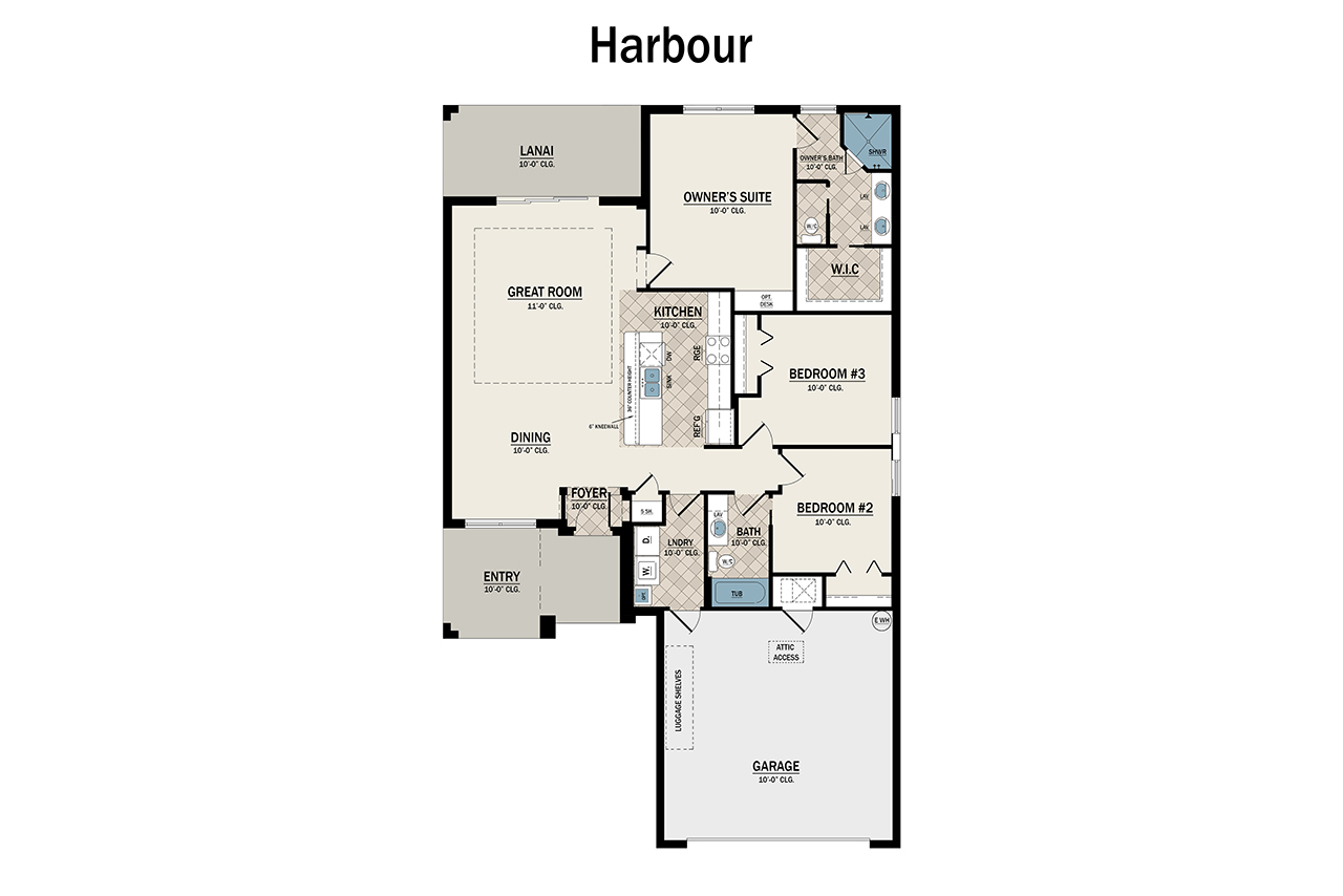 The Harbour may well be homeowners’ heaven. Its thoughtful, clever design attains the challenging goal of having both a very spacious home and the feeling that nothing is more than a few steps away. With three bedrooms and two baths, it encompasses all of the pampering amenities of our larger models, including an optional screened-in swimming pool for the finest in Florida living. This beauty even features a separate dining room for special occasions. Living here is reason enough to celebrate!
