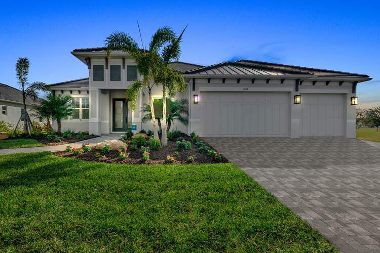 If you enjoy waking up feeling refreshed and ready for a sunny day ahead, you’ll love everything the Santa Maria 2 has to offer. This stylish, innovative home provides everything you need on one spacious floor so you have both luxury and comfort at all times. Past a charming entryway, you’ll find an elegant dining room that flows into the great room, a stunning kitchen with a contemporary island and a breakfast nook, two spacious bedrooms with two bathrooms, a media room for all of your entertaining needs, your spectacular owner’s suite and of course, an oversize lanai outside. After sunning yourself and relaxing outside, slip right into your owner’s suite to unwind. Who says you have to go to a spa to pamper yourself? Your luxurious bathroom has two walk-in closets, a walk-in shower, a soaking tub and dual vanities - all for your comfort. Best of all, this homes also comes with three garages and shelves so you have more than enough room for all the items that are import to you. As with all of our homes, a swimming pool and spa is optional for those who want to make the most of Florida living.